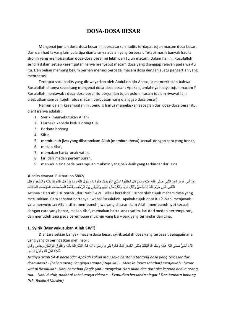 Agama Islam Dosa Besar