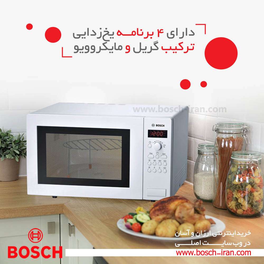 مایکروویو رومیزی 25 لیتری بوش دارای 4 برنامه یخ زدایی ترکیب گریل و مایکروویو