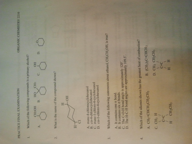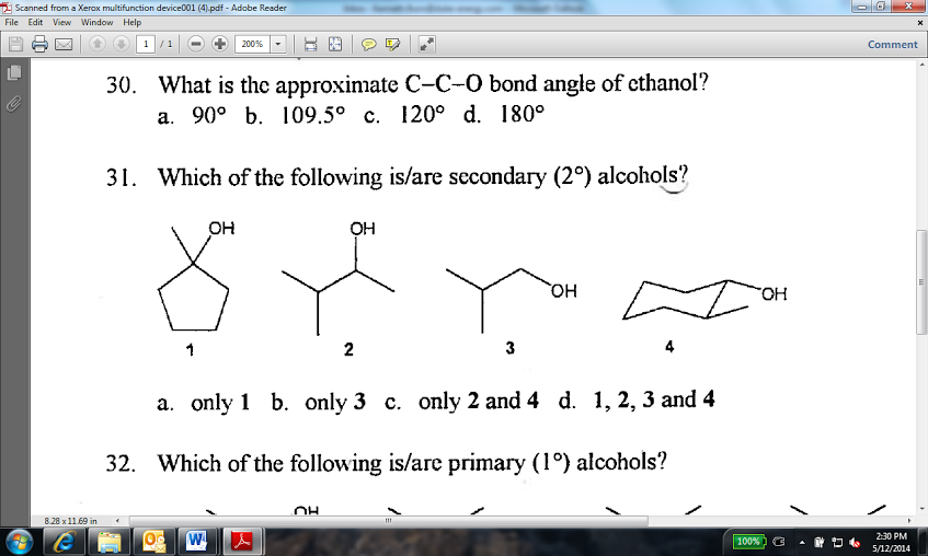 Chapter 10 Practice Questions Answers Chapter 10alcohols Multiple Choice 1 What Is The Approximate Coh Bond Angle Of An Alcohol A 90 B 109 5 C 120 D Course Hero