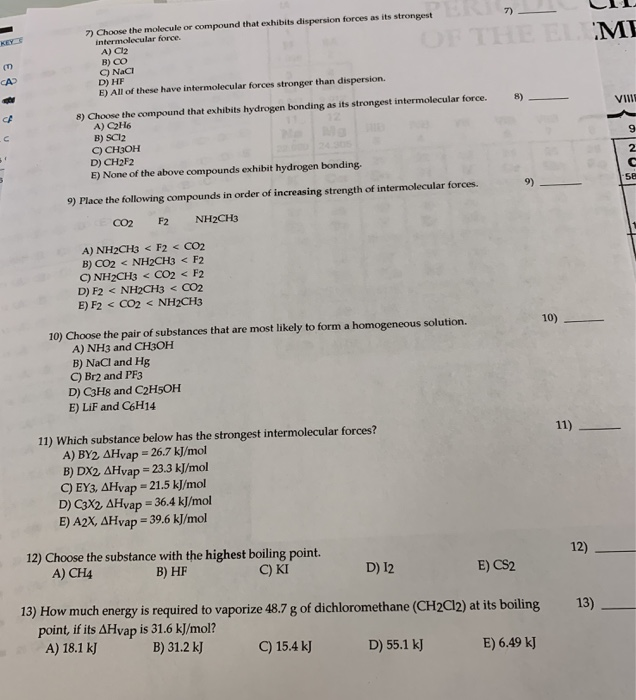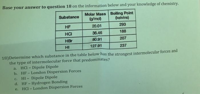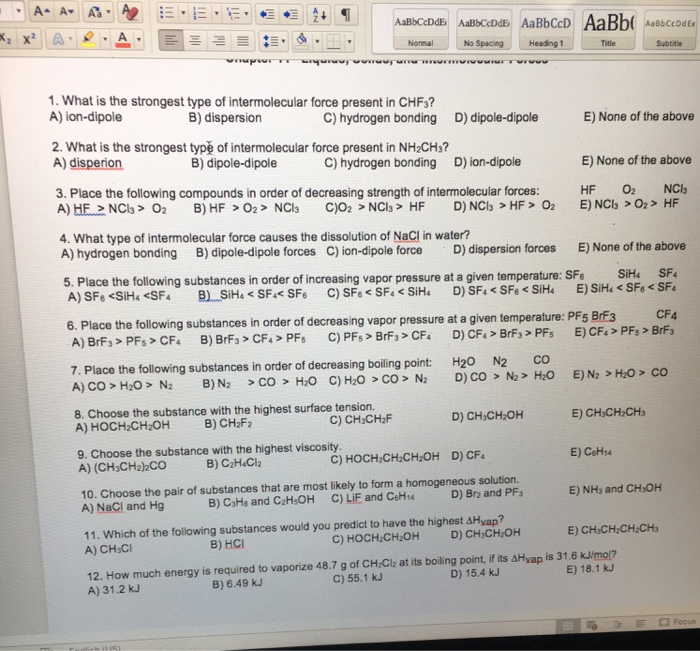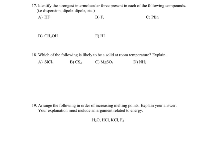 Solved 17 Identify The Strongest Intermolecular Force Pr Chegg Com