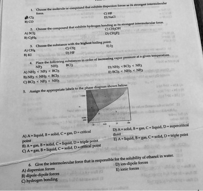 Solved 1 Choose The Molecule Or Compound That Exhibits D Chegg Com