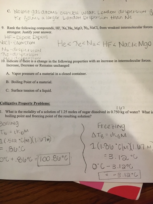 Solved In The Liquid State Which Species Has The Stronge Chegg Com