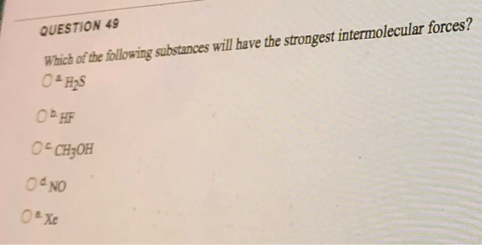 Solved What Is The Strongest Type Of Intermolecular Force Chegg Com