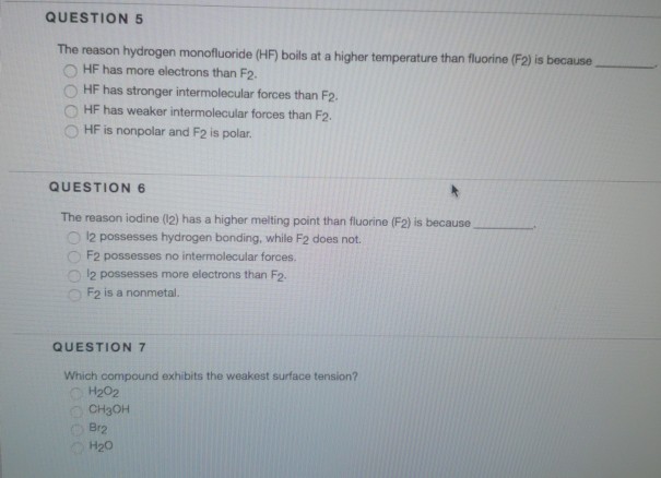 Why Does Hf Have A Lower Boiling Point Than Water Even Though F Is More Electronegative Than O Socratic