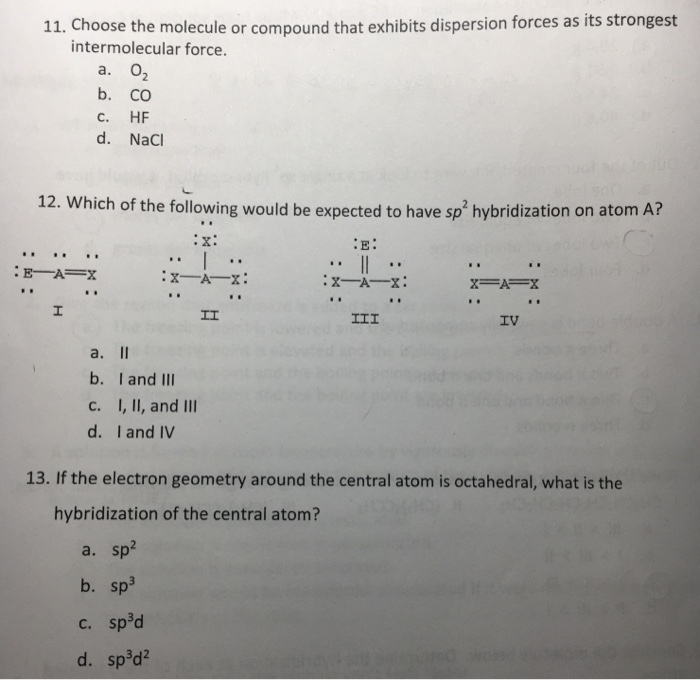 Solved 11 Choose The Molecule Or Compound That Exhibits Chegg Com