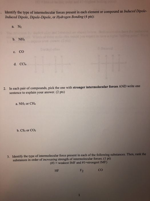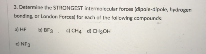 Solved 3 Determine The Strongest Intermolecular Forces Chegg Com