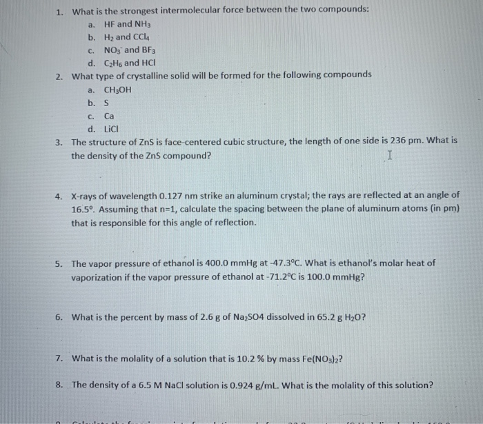 Solved 1 What Is The Strongest Intermolecular Force Betw Chegg Com