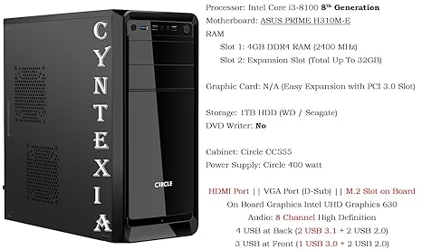 Amazon In Buy Cyntexia Desktop Pc Computer Intel Core I3 8100 4gb Ddr4 Ram 1tb Hdd Win 10 Operating System Basic Software Installed Plug Start Online At Low Prices In India Cyntexia