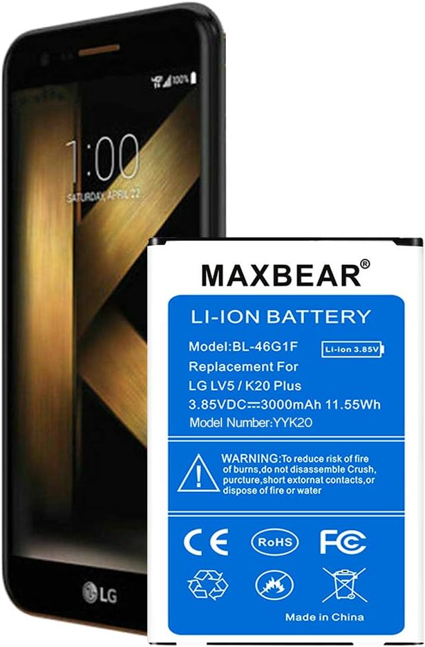 Lg K20 Plus Battery Maxbear 3000mah Li Ion Battery Bl 46g1f Replacement For Lg Lv5 K20 Plus Metropcs Mp260 T Mobile Tp260 Verizon Wireless Vs501 Lg K20 Plus Spare Battery 12 Month Warranty Amazon Co Uk Electronics