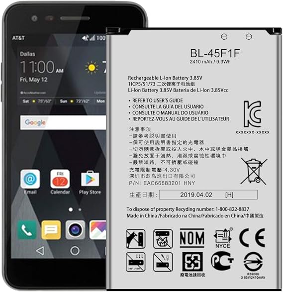 For Lg Phoenix 3 M150 M154 M151 M153 Replacement Battery Bl 45f1f Amazon Ca Cell Phones Accessories