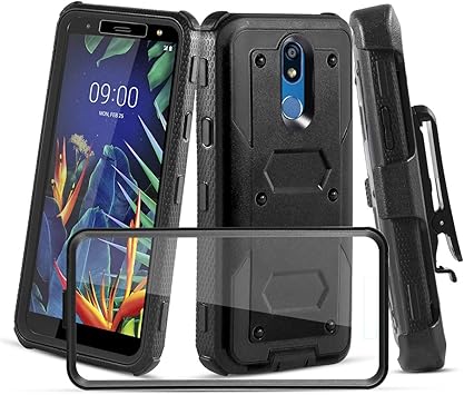 Amazon Com Casetank For Lg K40 Case Lg Solo Lte L423dl Case Lg Harmony 3 Lg K12 Plus Lg X4 2019 Lg Lmx420 Lg Xpression Plus 2 W Built In Screen Protector Protective Armor Holster Kickstand Black Electronics