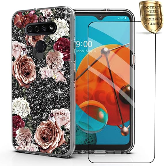 Amazon Com Ddtkzc For Lg K51 Phone Case Lg K51 Case Tempered Glass Protector Lustre Pattern Sparkle 3 In 1 Clear Shockproof Case For Lg Lm K500um Red Rose Electronics