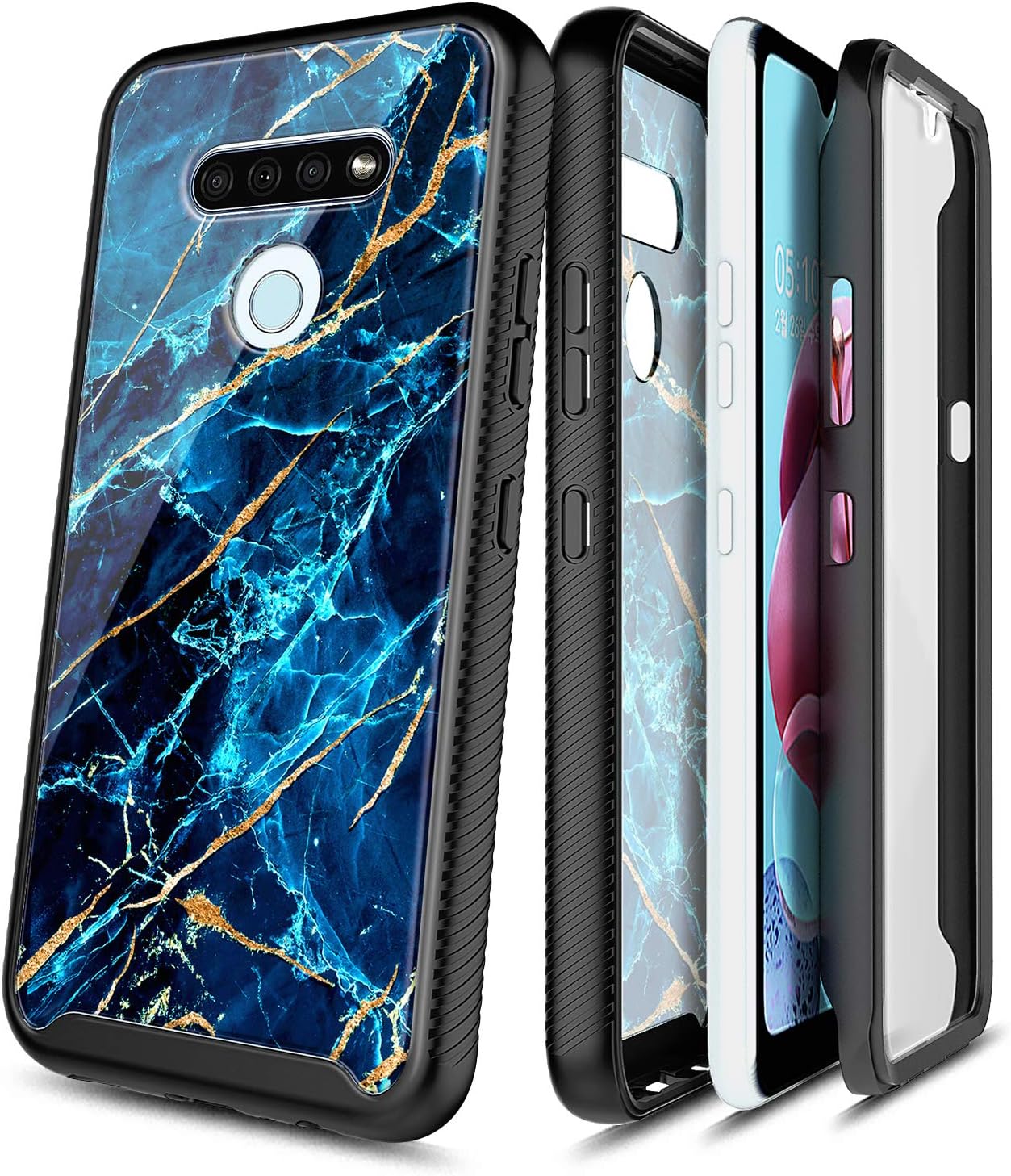 Amazon Com E Began Phone Case For Lg K51 Lg Reflect Full Body Protective Rugged Black Bumper Cover With Built In Screen Protector Marble Design Shockproof Impact Durable Case Sapphire