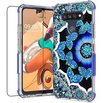 Amazon Com Oleaders For Lg K51 Case With Tempered Glass Screen Protector Rotatable Metal Ring Holder Compatible With Magnetic Car Kickstand Case For Lg K51 Blue