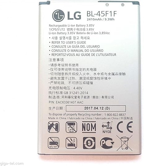 Replacement Battery Bl 45f1f 2410 3 85v Mah Fits For Lg K8 2018 Amazon Ca Cell Phones Accessories