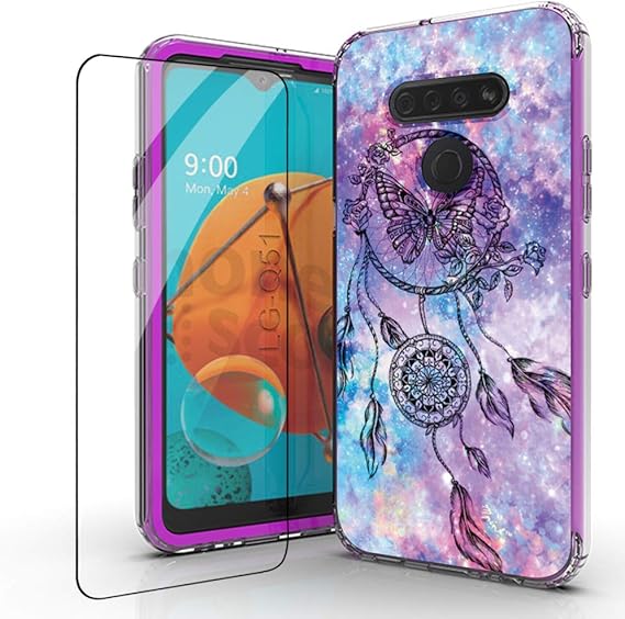 Amazon Com For Lg K51 Phone Case Lg K51 Case Tempered Glass Protector 2 In 1 Shockproof Phone Case For Lg Lm K500um Dream Catcher