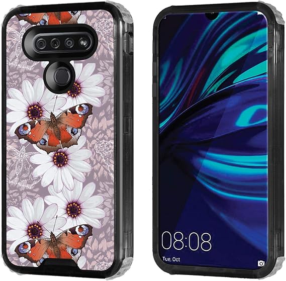 Amazon Com Casecreator Tm Ex Hd Hybrid Case Is Compatible With Lg K51 Lm K500um Boost Mobile Hd Black Floral Butterfly
