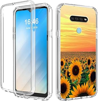 Amazon Com Airwee Lg K51 Case Dual Layer Clear Protective Case With Transparent Hard Pc Tpu Shockproof Bumper Phone Case Cover For Lg K51 Yellow Sunflower Electronics