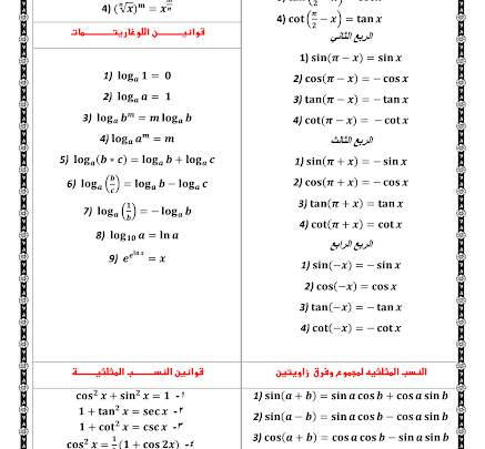 صف ثاني عشر فصل ثالث الرياضيات قوانين النسب المثلثية والمشتقات مدرستي الامارتية